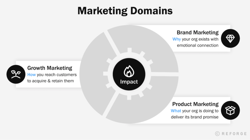 マーケティング担当者は、しばしば1つの領域の専門知識からスタートしますが、マーケティングリーダーは、顧客のプロダクト体験に影響を与える3つの異なる領域(ブランド・マーケティング、グロース・マーケティング、プロダクト・マーケティング)に精通し、専門知識を身につける必要があります。